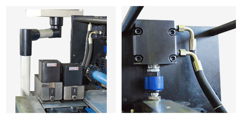 生產(chǎn)線的主機(jī)機(jī)架采用鋼材整體焊接而成,剛性好,結(jié)構(gòu)穩(wěn)定。電氣系統(tǒng)均裝有過(guò)載保護(hù)裝置,以防因不慎過(guò)載而導(dǎo)致的損壞。該生產(chǎn)線由電動(dòng)雙盤放料架、十一輥精密校平機(jī)壓筋機(jī)、液壓剪角機(jī)四套連模具,液壓剪板機(jī)以及液壓折邊機(jī)、電氣控制部分組成。